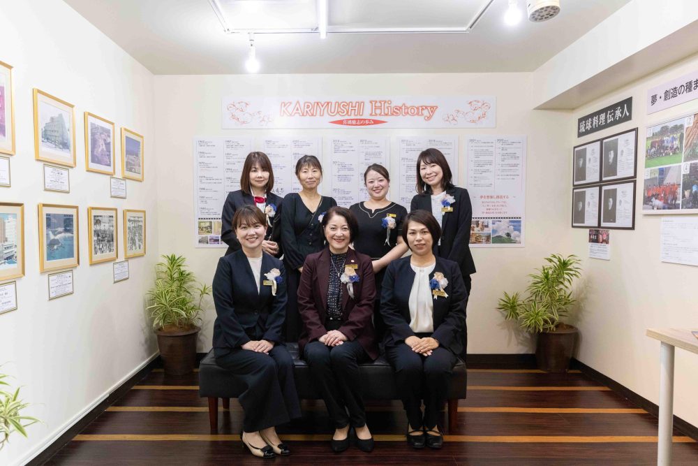 創業当初からの写真や年表を通じて、かりゆしグループの歩みを紹介しています。